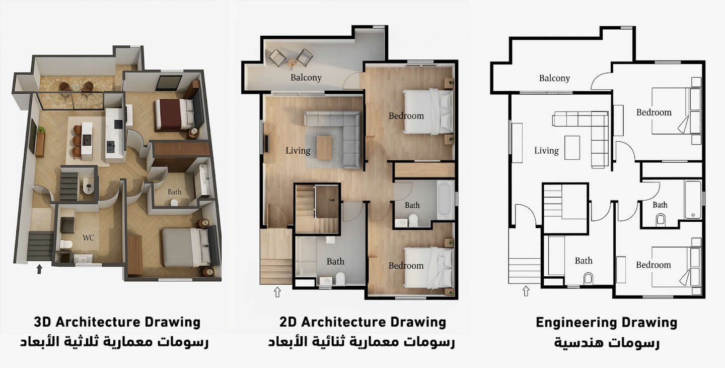 إضافة صور العقار الحقيقية قد لا تكون كافية أحيانًا. لذا، يُنصح بتضمين الرسومات المعمارية ثنائية أو ثلاثية الأبعاد أيضًا لتمنح العميل تصورًا أوضح وانطباعًا واقعيًا عن تقسيمات العقار الداخلية، وتشعره بثقة أكبر وتقلل من تردده تجاه العقار.